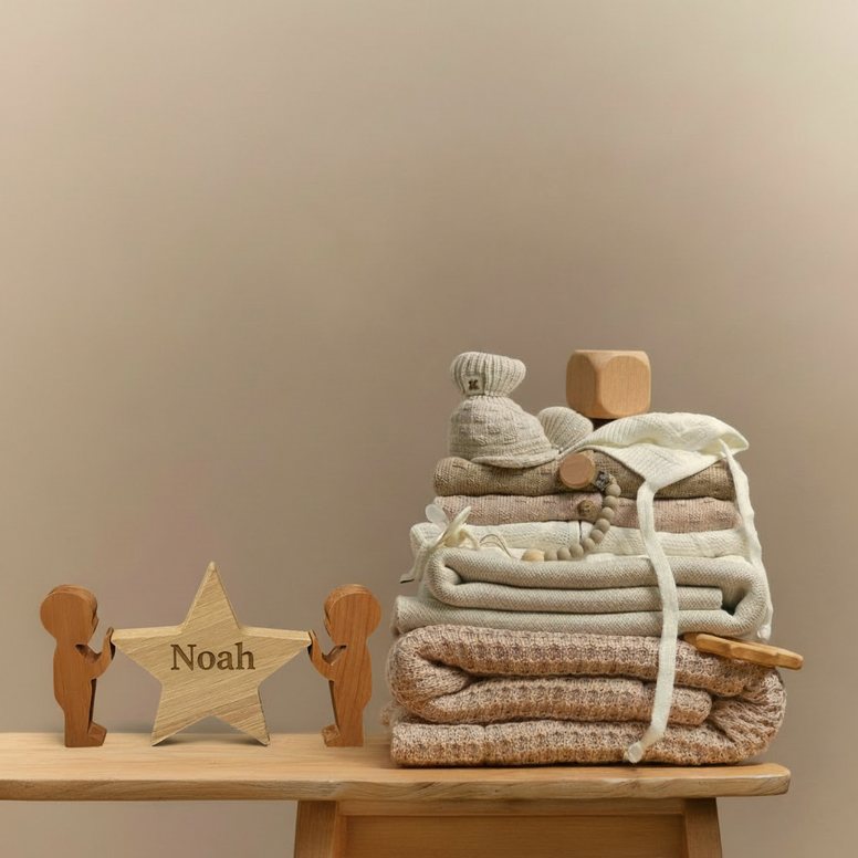 Personalisatie is inbegrepen: laat jouw eigen tekst, naam of datum graveren voor een blijvend persoonlijk accent. Combineer de ster met onze houten silhouet poppetjes voor een sfeervol tafereel.